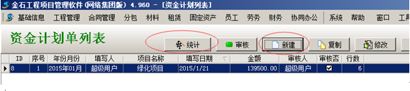 【資金計(jì)劃單】在菜單【二次開發(fā)】-【資金計(jì)劃設(shè)置】中,主要包括了【新建】資金計(jì)劃單和資金計(jì)劃單的【統(tǒng)計(jì)】功能。