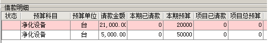 我們選擇其中兩項(xiàng),高效過濾器和移動(dòng)式消毒車,其中高效過濾器預(yù)算金額為20000元、移動(dòng)式消毒車預(yù)算費(fèi)用為50000元,當(dāng)我們的請款金額小于預(yù)算金額時(shí)候,顯示為正常的白色。