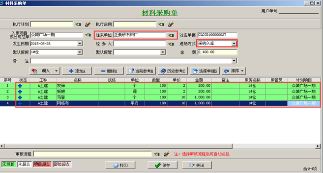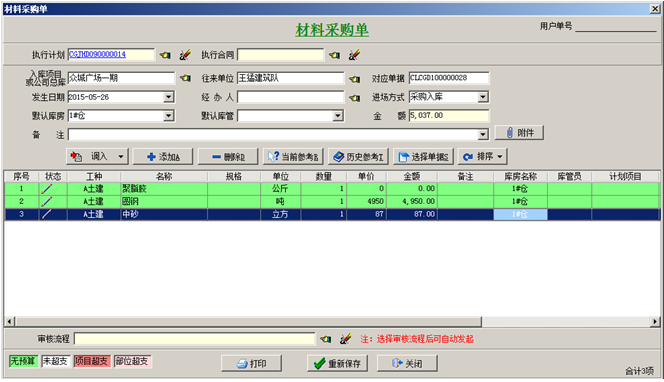 工程項(xiàng)目管理軟件材料采購(gòu)流程