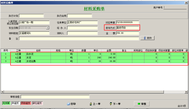 1無(wú)預(yù)算,沒(méi)有采購(gòu)計(jì)劃以及采購(gòu)合同的情況,可進(jìn)行直接采購(gòu),做采購(gòu)入庫(kù)單采購(gòu)入庫(kù)或直進(jìn)項(xiàng)目,這種工程項(xiàng)目材料采購(gòu)流程適合項(xiàng)目上零星材料的采購(gòu)。如圖:
