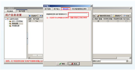 如果該人員有單據(jù)審核的權(quán)限,點(diǎn)擊“審核密碼”,設(shè)置審核密碼。
