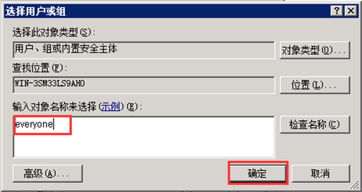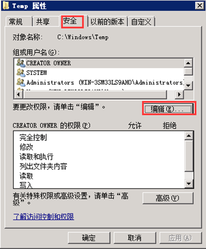 第二步,在彈出的對話框中點(diǎn)擊“安全”,并點(diǎn)擊“編輯”,輸入對象名為“Everyone”。如圖: