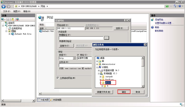 選擇網(wǎng)站文件夾所在的物理路徑。如圖: