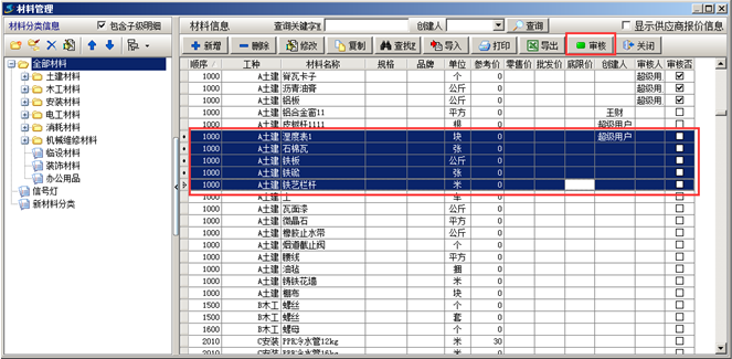 工程項目管理軟件中基礎信息—材料維護(審核)