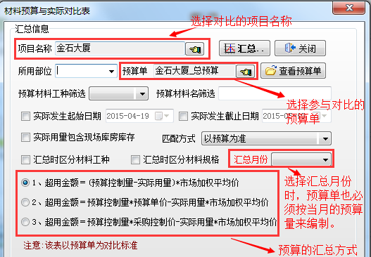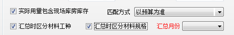 預(yù)算單材料名稱為基準(zhǔn)的,而且預(yù)算單里區(qū)分了工種,所以需要將“匯總時區(qū)分材料工種”打鉤