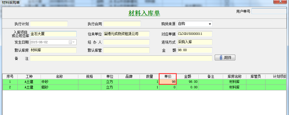 在工程項目管理系統(tǒng)中其中材料采購單中還有超過一年內(nèi)最高采購價提示。如下圖