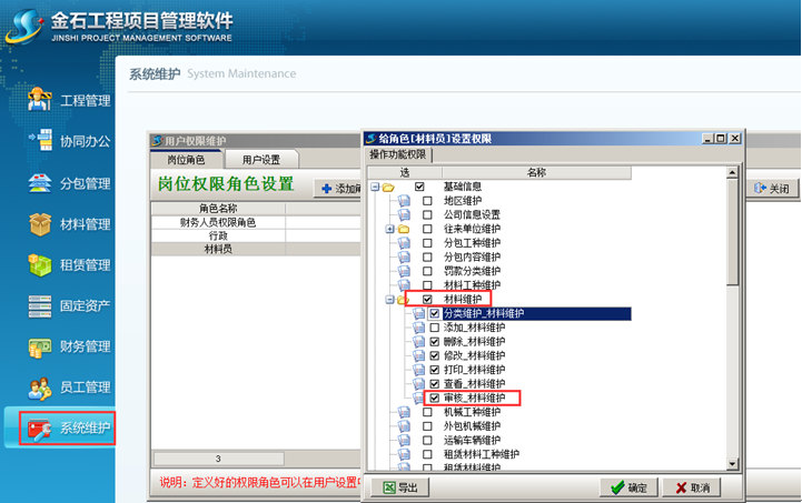 1、首先將 “審核_材料”的功能單獨(dú)分配給材料維護(hù)員一人。