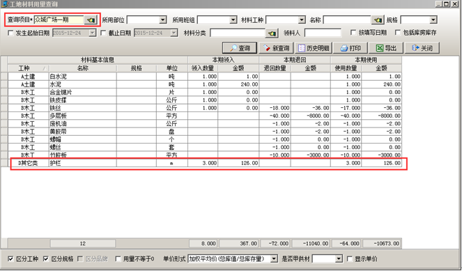 工程管理軟件中“材料調(diào)撥單”添加完成之后材料調(diào)撥到項(xiàng)目上,則可在材料用量查詢以及項(xiàng)目成本中查詢到對(duì)應(yīng)的成本(如果是調(diào)撥到項(xiàng)目庫房則可在庫房中查到對(duì)應(yīng)庫存)。