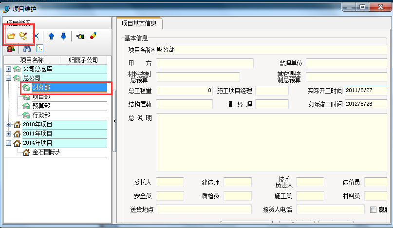 1.因資金在金石工程項目管理軟件中也是區(qū)分項目的,所以在項目維護中新建個財務部節(jié)點