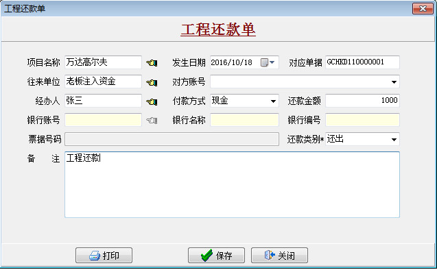 工程項目管理在施工過程中經常會有如下情況:施工前老板墊支一部分現金給某個項目,隨著項目的開展會多次墊支現金給項目;需要詳細有效的體現現金的墊支明細,現解決方法如下: