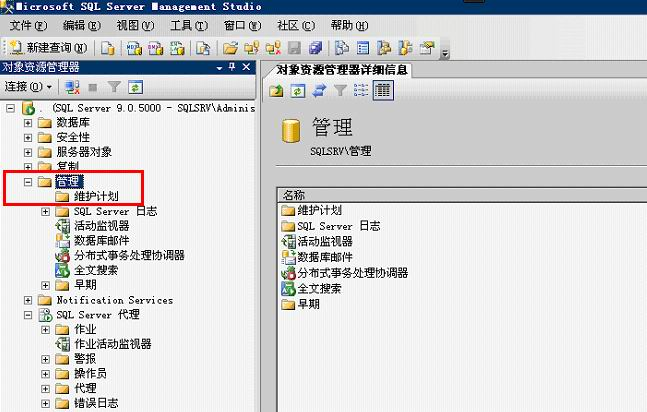 3、在【對象資源管理器】窗口里選擇【管理】——【維護(hù)計(jì)劃】選項(xiàng)。