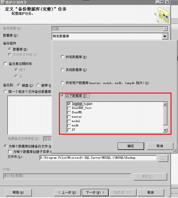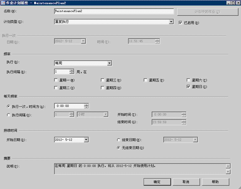點(diǎn)擊【更改】按鈕,彈出如圖所示【計(jì)劃作業(yè)屬性】對話框。在該對話框里可以設(shè)置備份數(shù)據(jù)庫的時間及頻率,設(shè)置完畢后單擊【確定】按鈕回到【選擇計(jì)劃屬性】窗口,再單擊【下一步】按鈕。