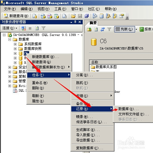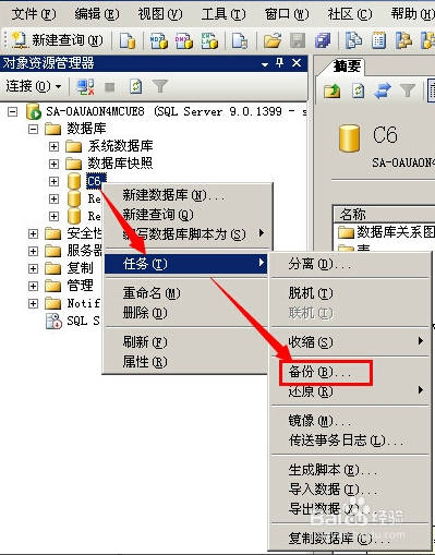 3、雙擊數(shù)據(jù)庫,右擊數(shù)據(jù)庫名,然后鼠標(biāo)移動到任務(wù),點(diǎn)擊備份