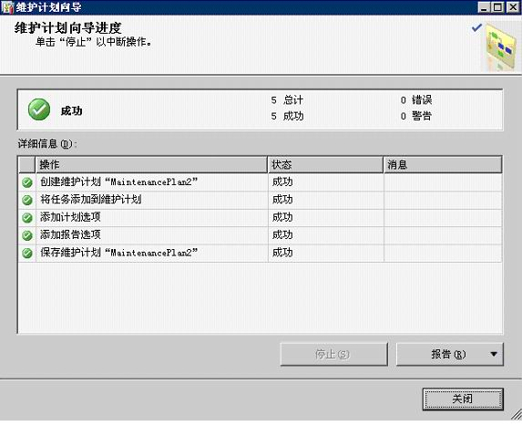 12、創(chuàng)建完維護(hù)計(jì)劃后,出現(xiàn)以下【維護(hù)計(jì)劃向?qū)нM(jìn)度】畫面,這樣就完成了自動備份的操作。