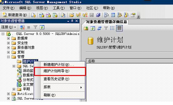 4、右擊【維護(hù)計(jì)劃】,在彈出的快捷菜單里選擇【維護(hù)計(jì)劃向?qū)А窟x項(xiàng)
