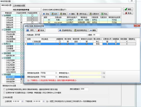 1、在審核流程設(shè)置中維護好材料計劃單的審核方案,建立新方案(方案名可改),具體操作如下