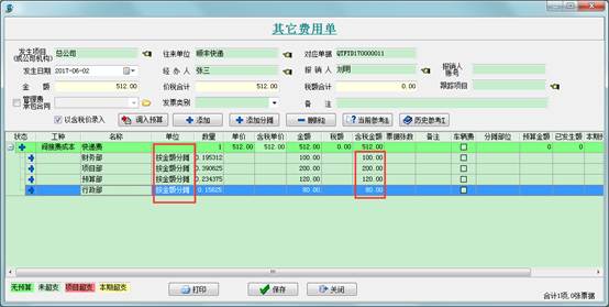 在使用工程項目管理軟件中,如果有的費用需要分攤到項目或部門中去,需要在做其他費用單時做如下操作,這里做簡單的演示;