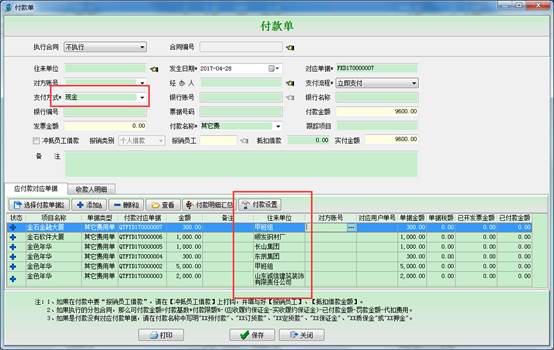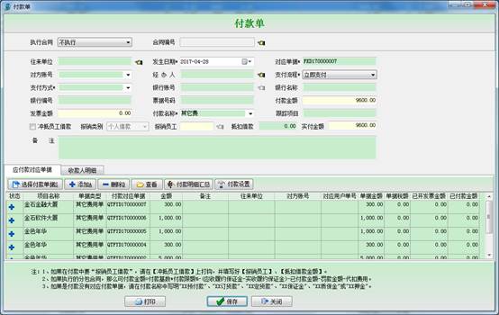 然后點(diǎn)擊付款,彈出付款申請單或付款單,如圖
