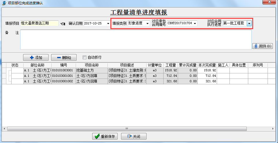 根據(jù)工程量清單填寫(xiě)形象進(jìn)度(形象進(jìn)度為與甲方結(jié)算的依據(jù)),對(duì)應(yīng)“承包合同”和“合同執(zhí)行進(jìn)度”