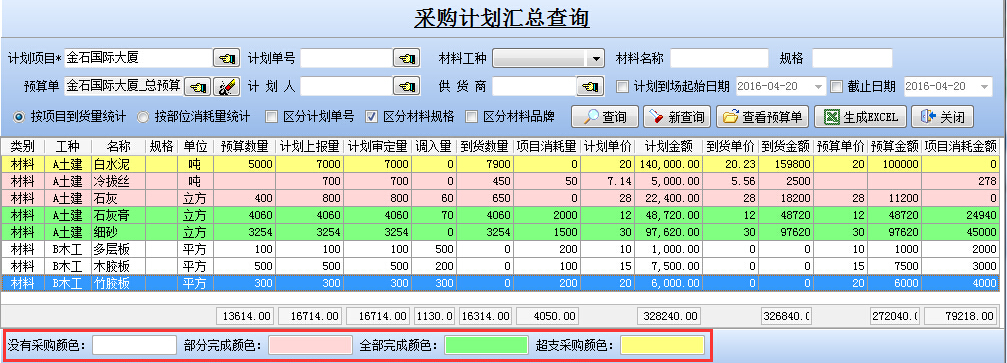 可實(shí)時查詢項目的預(yù)算量、計劃上報量、計劃審定量、總庫調(diào)入量、采購到貨量、項目消耗量,六種數(shù)據(jù)的動態(tài)變化。