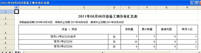 除了設(shè)備調(diào)撥單列表之外,系統(tǒng)中還有更全面的設(shè)備工地分布表??梢苑浅V庇^的看到企業(yè)的固定資產(chǎn)在各個(gè)工地的分布情況。