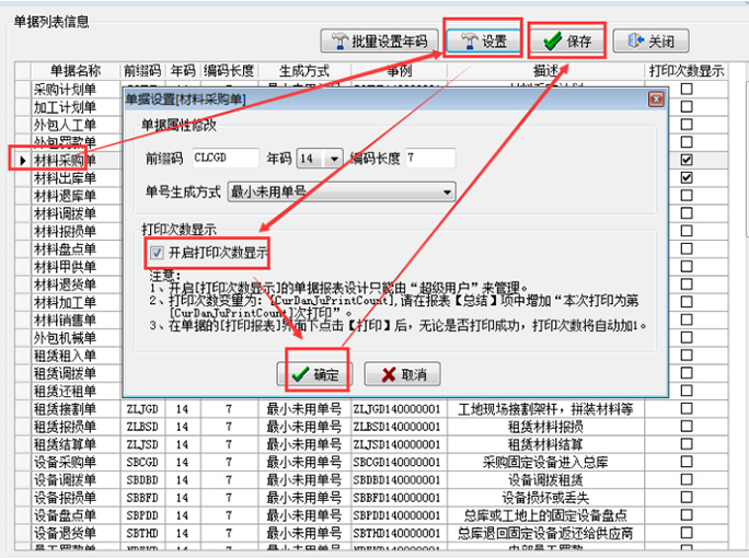 表格打印次數(shù)顯示功能是針對部分工地人員造價,一張單據(jù)多次報賬的情況制作。