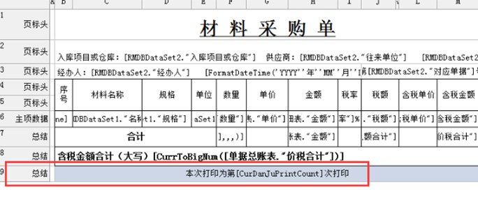 設置完成后,操作者在生成表格時,可在尾欄插入【數(shù)據(jù)字段】-本次打印為第[CurDanJuPrintCount]打印,示意如下: