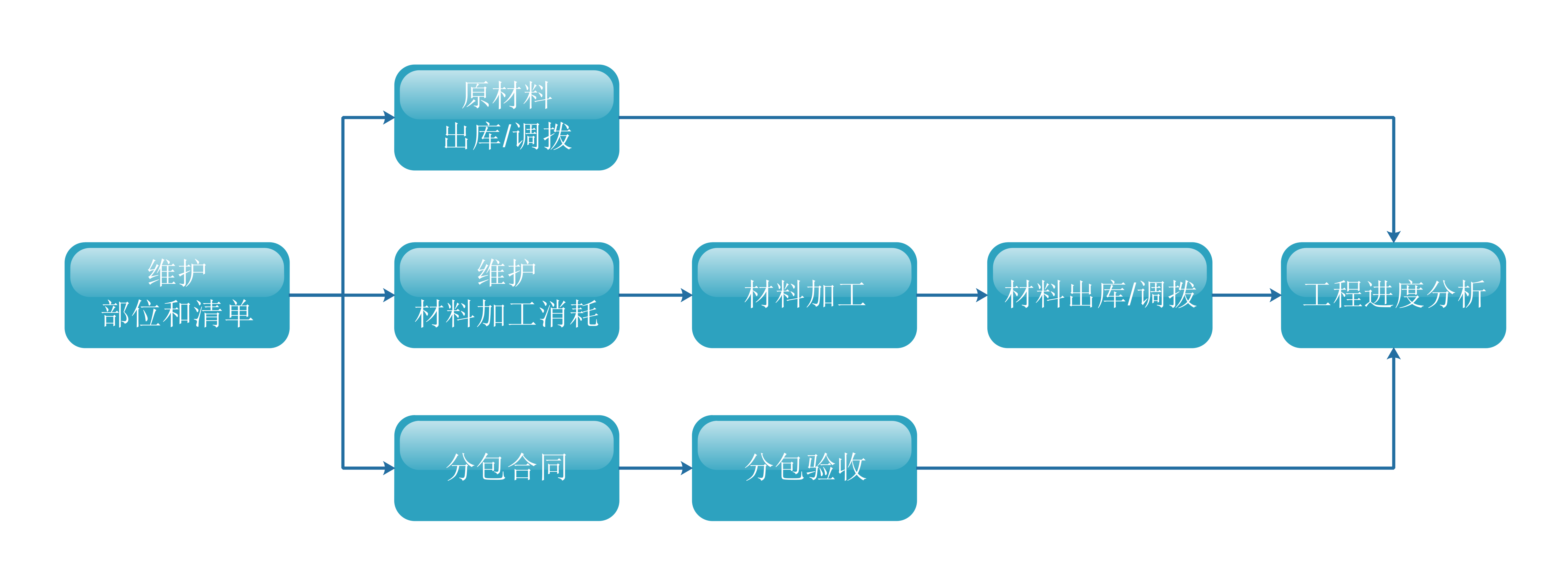 在施工進(jìn)度計(jì)劃的基礎(chǔ)上,即(工作部位分解)的基礎(chǔ)上,編制材料需求計(jì)劃、建立材料成本維護(hù)、材料加工清單、材料出庫(kù)單或調(diào)撥單關(guān)系明細(xì),產(chǎn)生詳細(xì)的進(jìn)度比較和詳細(xì)的歸納比較。