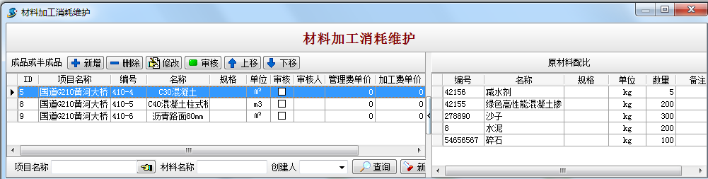 在實(shí)際應(yīng)用中,根據(jù)預(yù)算軟件或其他方法獲得的詳細(xì)秘密配方不準(zhǔn)確。在制造實(shí)驗(yàn)過(guò)程中獲得的原材料秘密配方可輸入材料成本維護(hù),并根據(jù)準(zhǔn)確的配合比控制材料的數(shù)量和進(jìn)度。