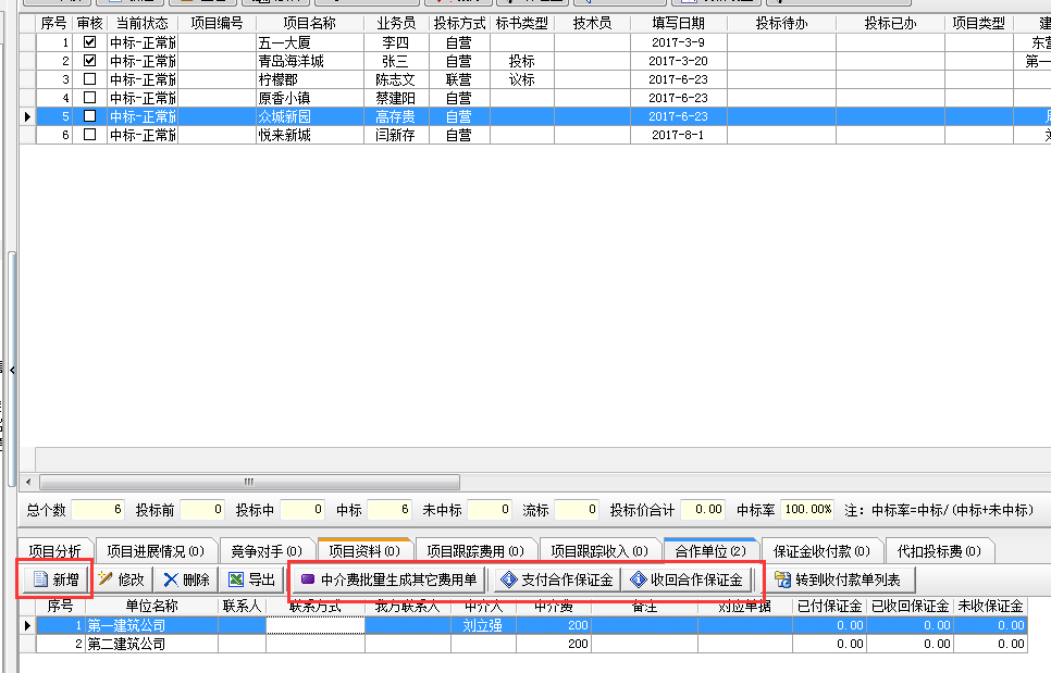如果需要向各陪標(biāo)方支付陪標(biāo)費,或向介紹人支付介紹費 ,可通過【中介費批量生成其它費用單】來完成!