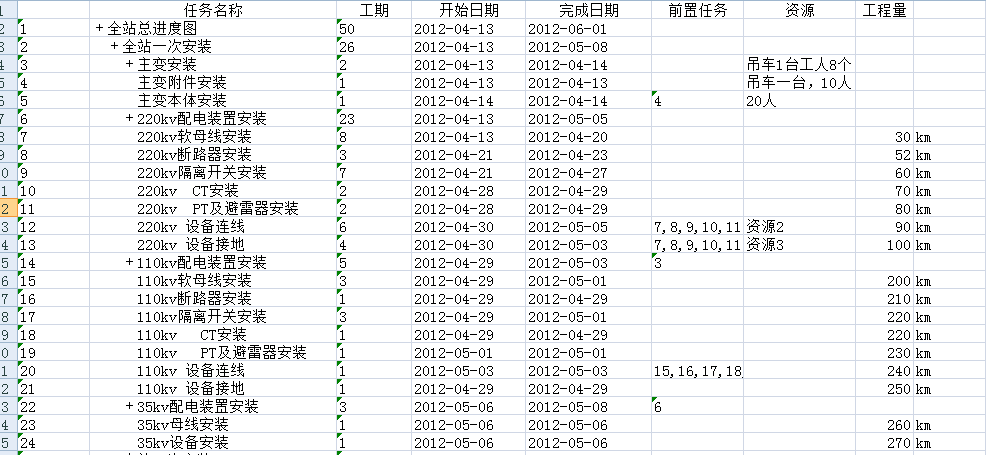 1.來自Project軟件導(dǎo)出的excel導(dǎo)入方法。