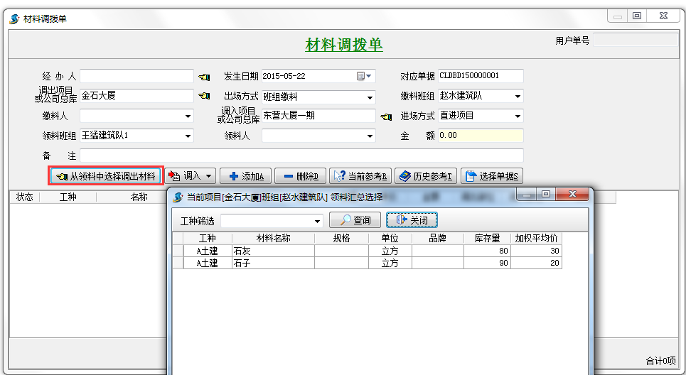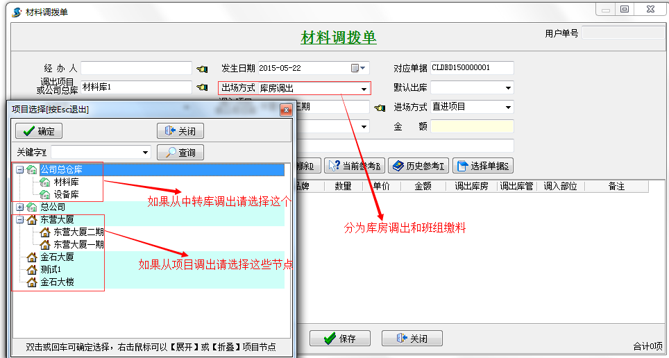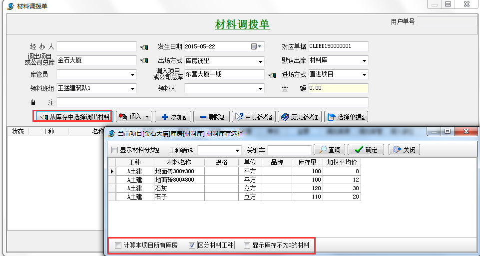 2、公司的A中轉(zhuǎn)庫(kù)將材料調(diào)撥到B項(xiàng)目。
