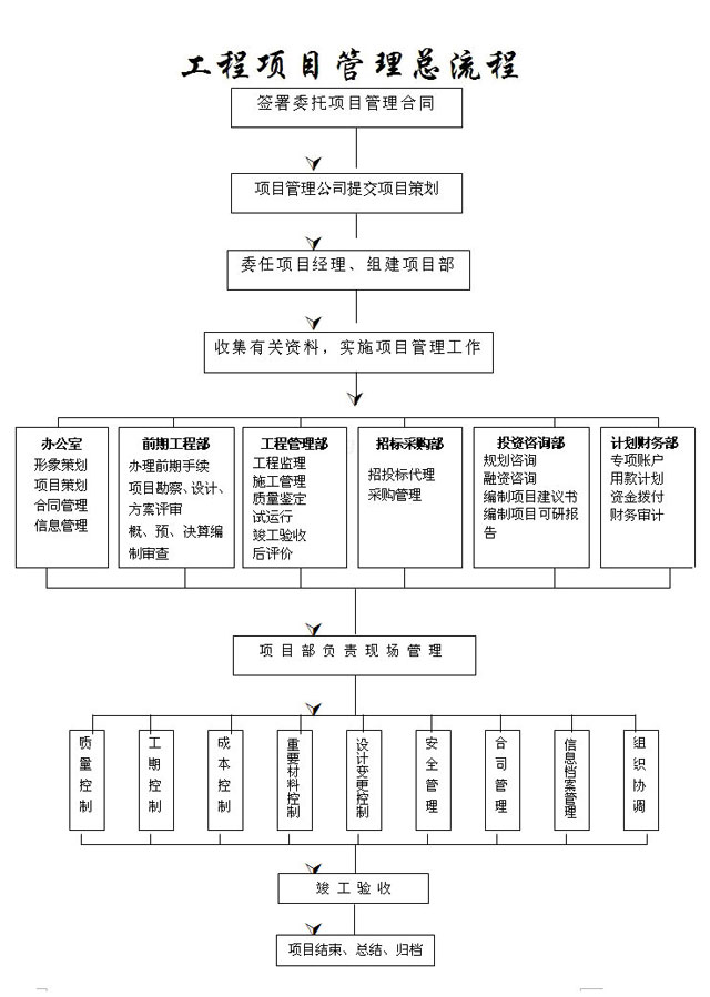 建筑項(xiàng)目的生產(chǎn)要素有勞動(dòng)力、材料、機(jī)械設(shè)備、技術(shù)和資金,這些要素具有集合性、相關(guān)性、目的性和環(huán)境適應(yīng)性,是一種相互結(jié)合的立體多維的關(guān)系,這就說(shuō)明項(xiàng)目的實(shí)現(xiàn)是一個(gè)具有系統(tǒng)性的施工過(guò)程。建筑項(xiàng)目管理具有系統(tǒng)管理的特點(diǎn)。加強(qiáng)項(xiàng)目管理,必須對(duì)施工項(xiàng)目的生產(chǎn)要素詳細(xì)分析,認(rèn)真研究并強(qiáng)化其管理。金石建筑工地管理系統(tǒng)著眼于建筑施工項(xiàng)目中的各種重要環(huán)節(jié)有效管理,既考慮到對(duì)單個(gè)項(xiàng)目中各種生產(chǎn)因素的管理,又考慮到建筑企業(yè)管理過(guò)程中對(duì)公司有限資源的統(tǒng)籌安排及有效利用。下文就以山東宏太為例,簡(jiǎn)單介紹針對(duì)建筑施工企業(yè)項(xiàng)目管理的特點(diǎn),以及如何建立完善、高效的項(xiàng)目管理信息化系統(tǒng)。 該公司項(xiàng)目管理總流程如下圖: