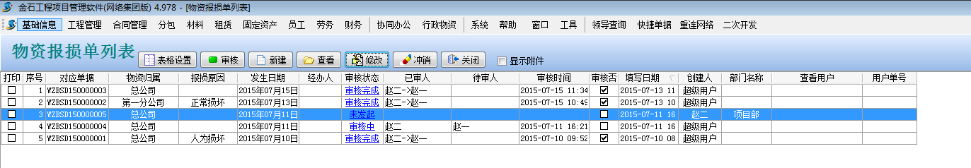 保存后返回到【物資報(bào)損單列表】中,如下圖: