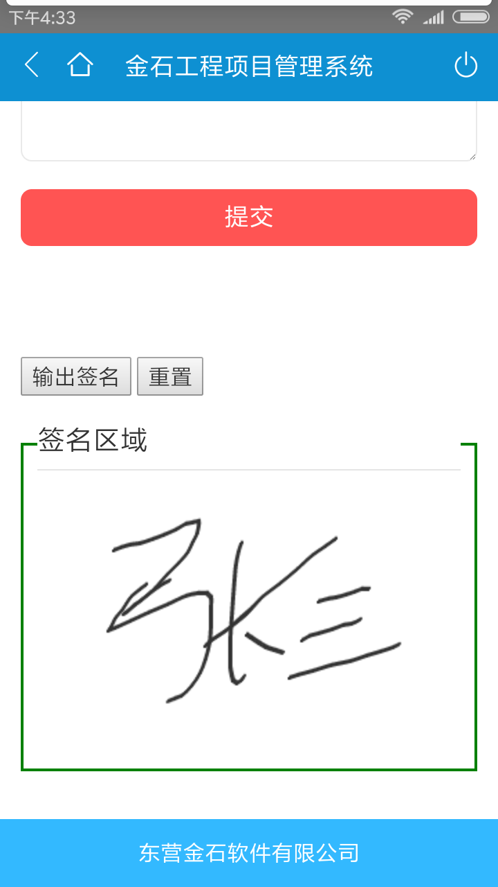 在項目施工過程中,現場審核單據需要打印后才能手動簽字,效率比較低,為此金石工程項目管理軟件開發(fā)了審核過程中使用手機電子簽名。具體的功能實現如下: