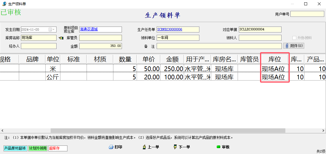 生產(chǎn)增加庫位:應(yīng)用于庫房按實際材料種類進(jìn)行分類存放,統(tǒng)計該庫位材料的收支存情況