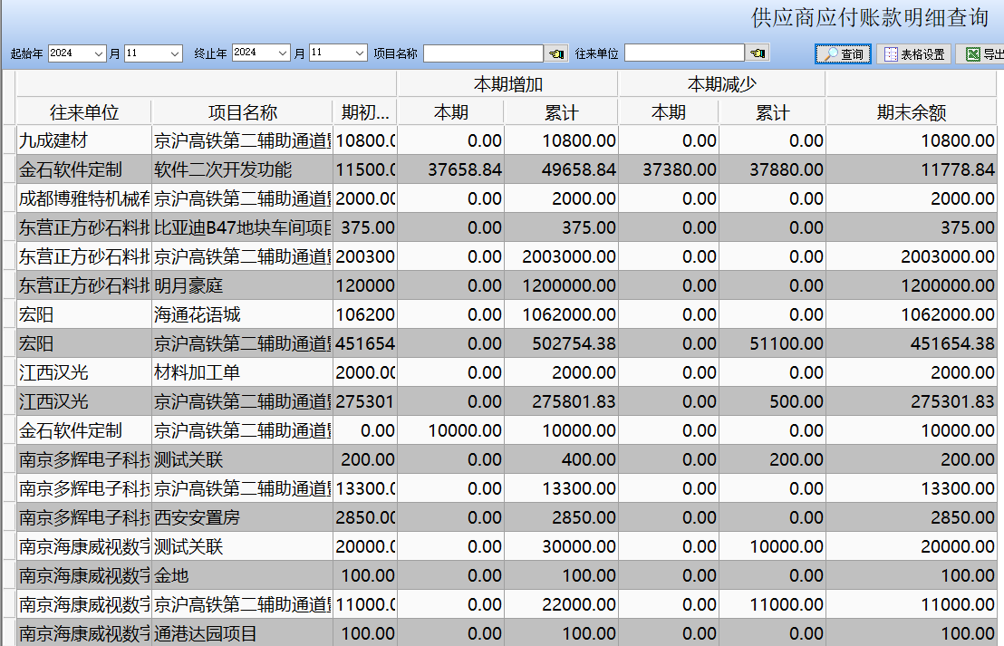 金石軟件更新——增加應(yīng)付賬款明細(xì)查詢