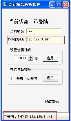 登陸后,會自動顯示當(dāng)前外網(wǎng)的ip地址,如下圖: