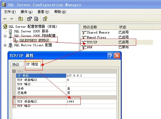 路由器中不映射Sqlserver2005默認(rèn)的1433端口,映射Sql2005的動態(tài)端口。動態(tài)端口的查看方法如下圖: