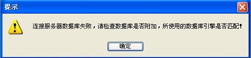 如果彈出錯提示:“連接服務(wù)器數(shù)據(jù)庫失敗,請檢查數(shù)據(jù)庫是否附加,所使用的數(shù)據(jù)庫引擎是否匹配”