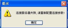 點確定后,在彈出的連接設(shè)置中點確定按鈕,如果彈出錯誤提示:“連接服務(wù)器失敗”,請按下面的方案依次檢查: