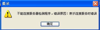 故障四、客戶端無法訪問,彈出錯誤提示:“不能連接服務(wù)器檢測程序,錯誤原因:表示連接服務(wù)器是錯誤”如下圖:
