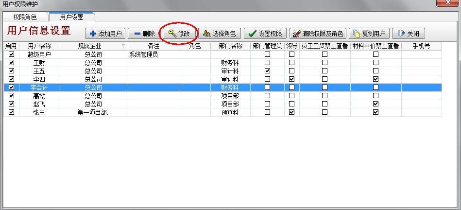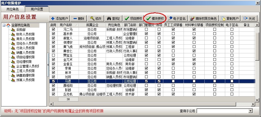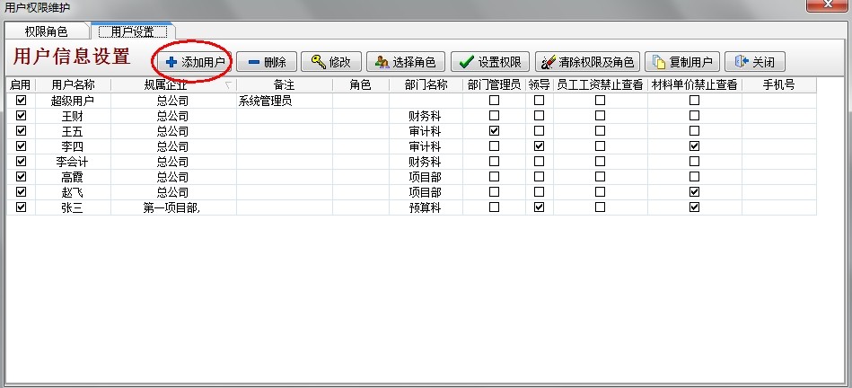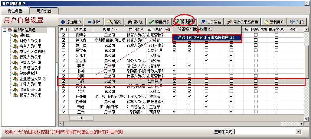 其他人員同樣的設(shè)置,對(duì)于相同部門權(quán)限相同的人員賦予同樣的角色即可。