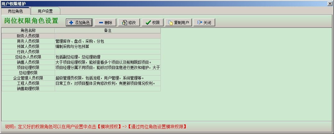 現(xiàn)在介紹一下2、按崗位角色設(shè)置權(quán)限: