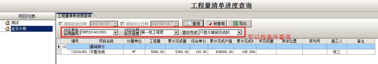或是選擇相應(yīng)的條件查看工程量清單進(jìn)度
