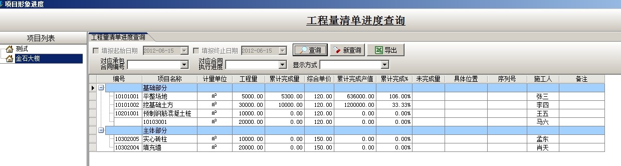 工程進(jìn)行過(guò)程中,總公司可以隨時(shí)查詢工程量清單