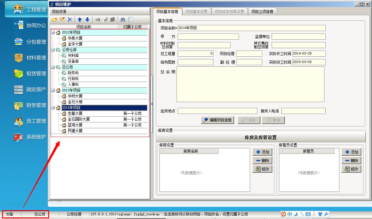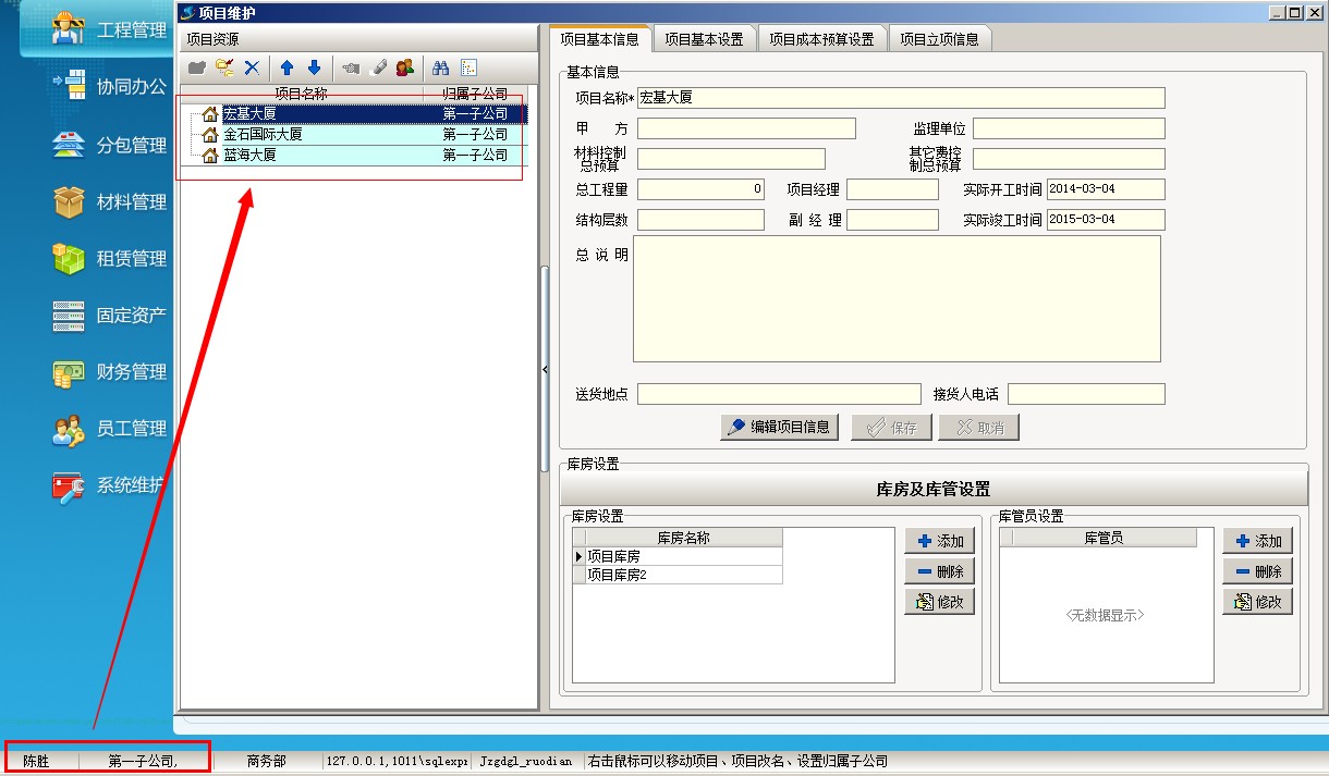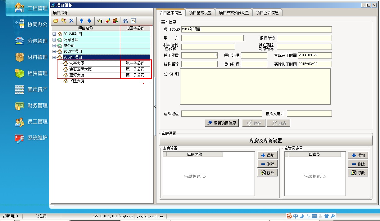 公司選擇窗口中選擇項目所屬的子公司,點確定